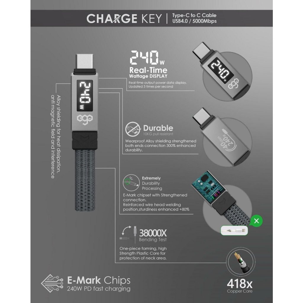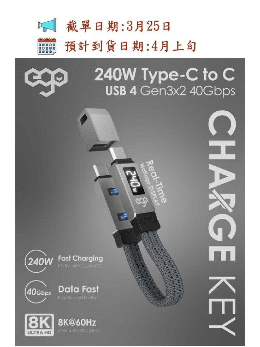 🟡EGO CHARGEKEY 240W USB4 Type-C 匙扣線🟡