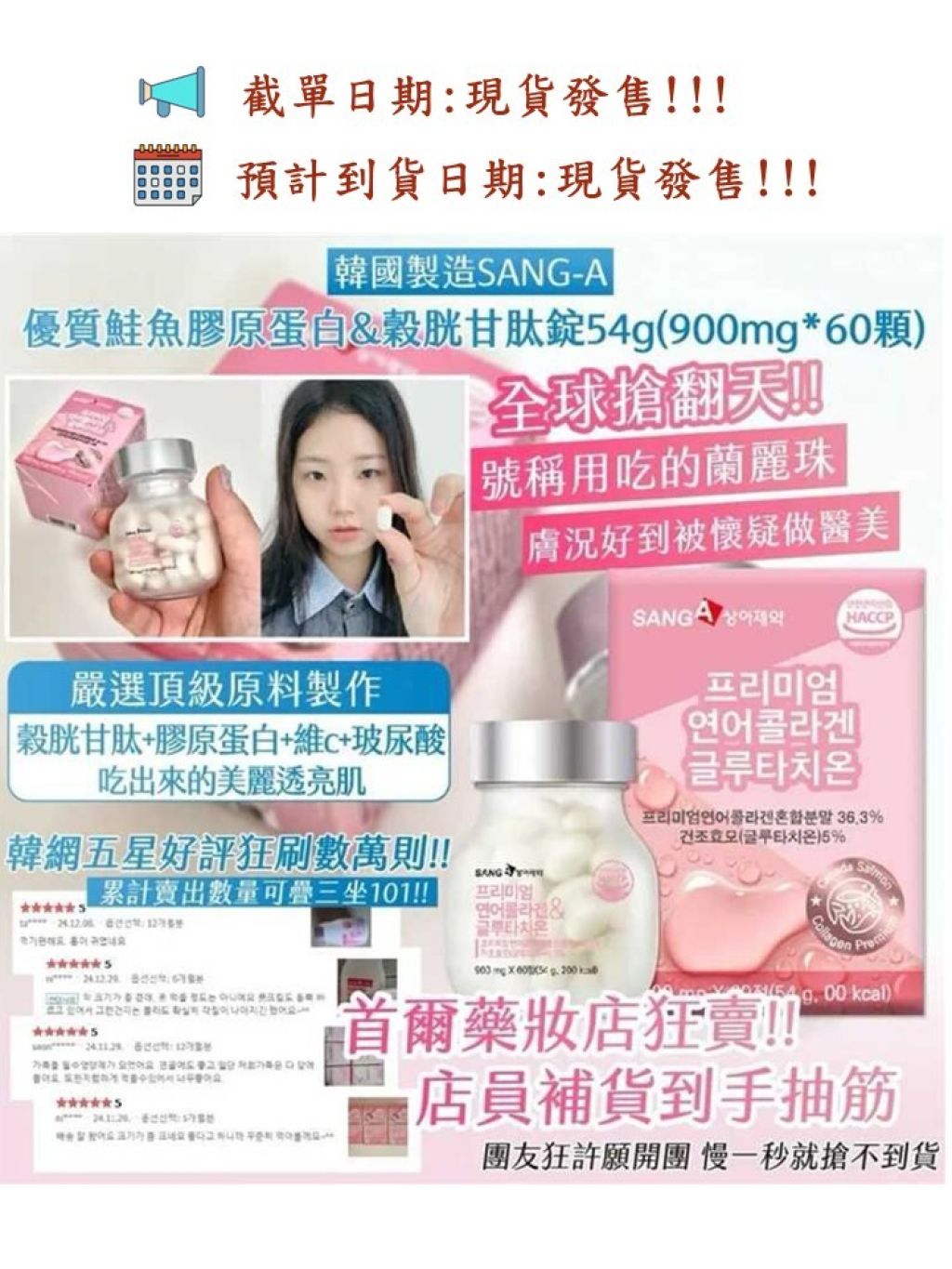 韓國🇰🇷SANG-A 優質鮭魚膠原蛋白&穀胱甘肽錠54g(只限批發會員下單)