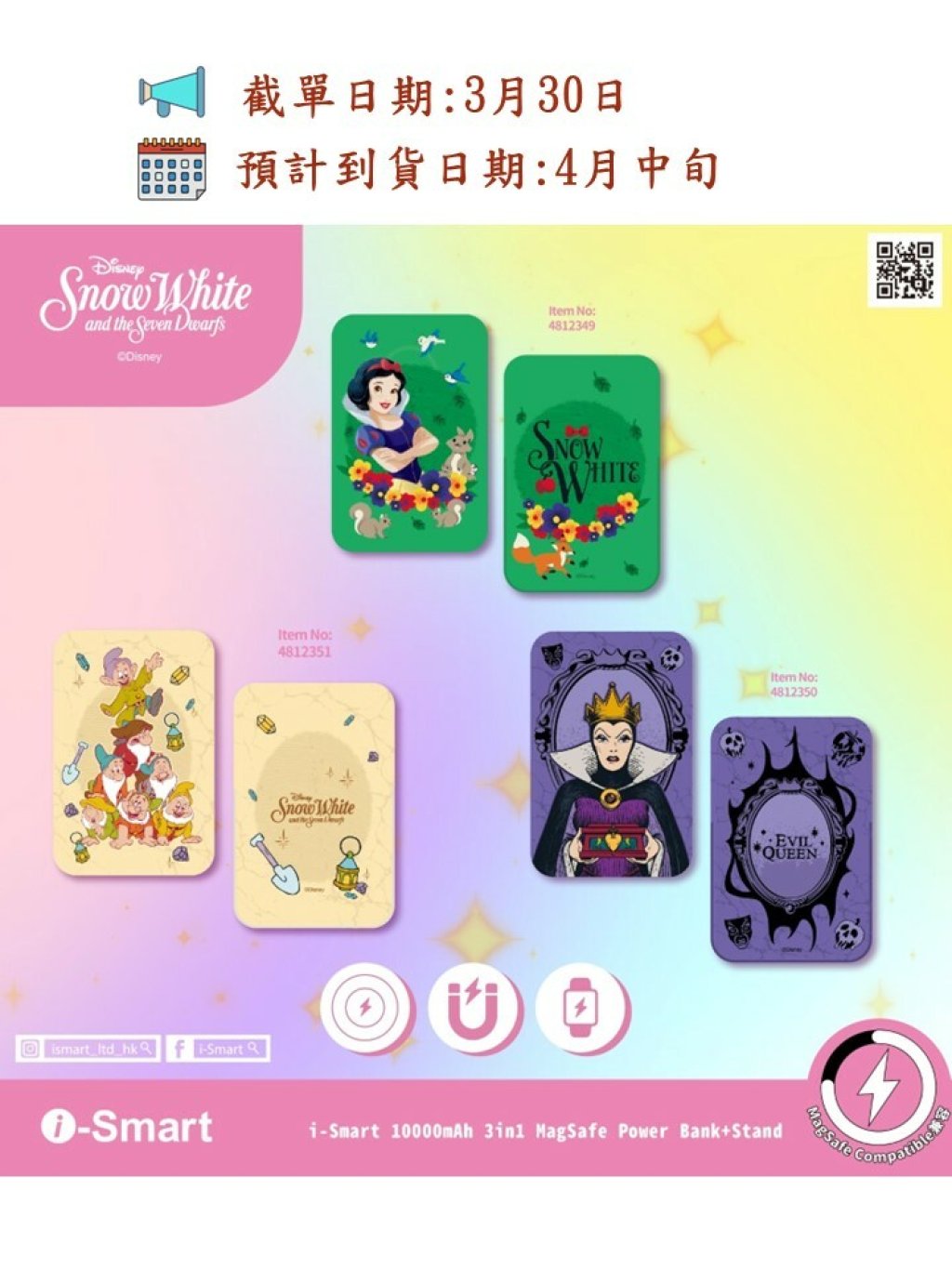 i-Smart新推出迪士尼3合1磁吸行動電源更添置⌚