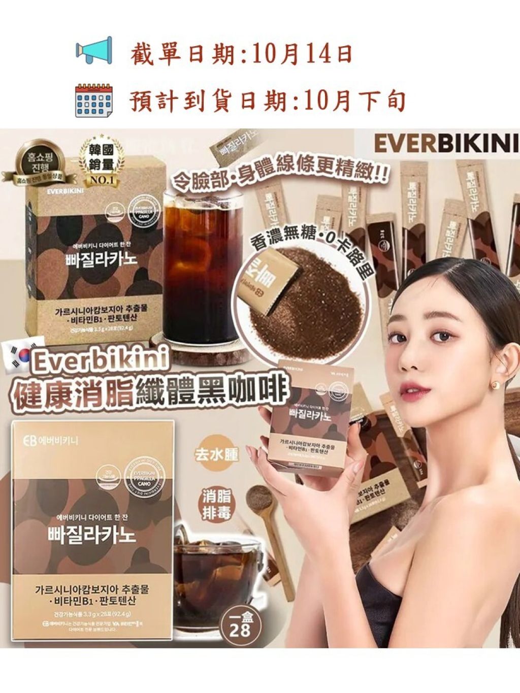 🇰🇷韓國熱銷網紅No.1 🏆,香濃無糖消脂排毒EVERBIKINI,💪🏻健康消脂纖體咖啡☕【0卡路里】‼️🥰MAMAMOO華莎代言,香濃無糖0卡路里🏋🏻♀️,藤黃果成份消脂排毒♡,自己沖一杯Americano~