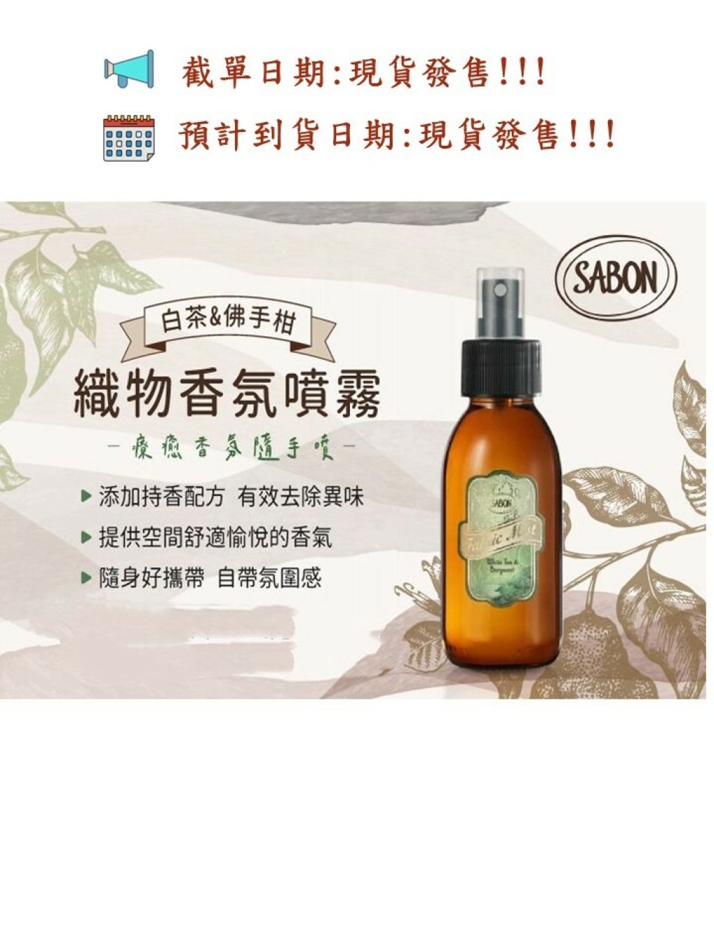 🌸SABON 白茶&佛手柑織物香氛噴霧100ml (免稅店直出)