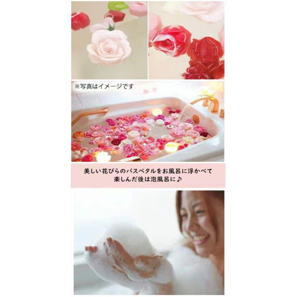 1️⃣將浴缸裝滿熱水,將本產品放入其中,像栩栩如生地飄浮的花瓣一樣享受沐浴