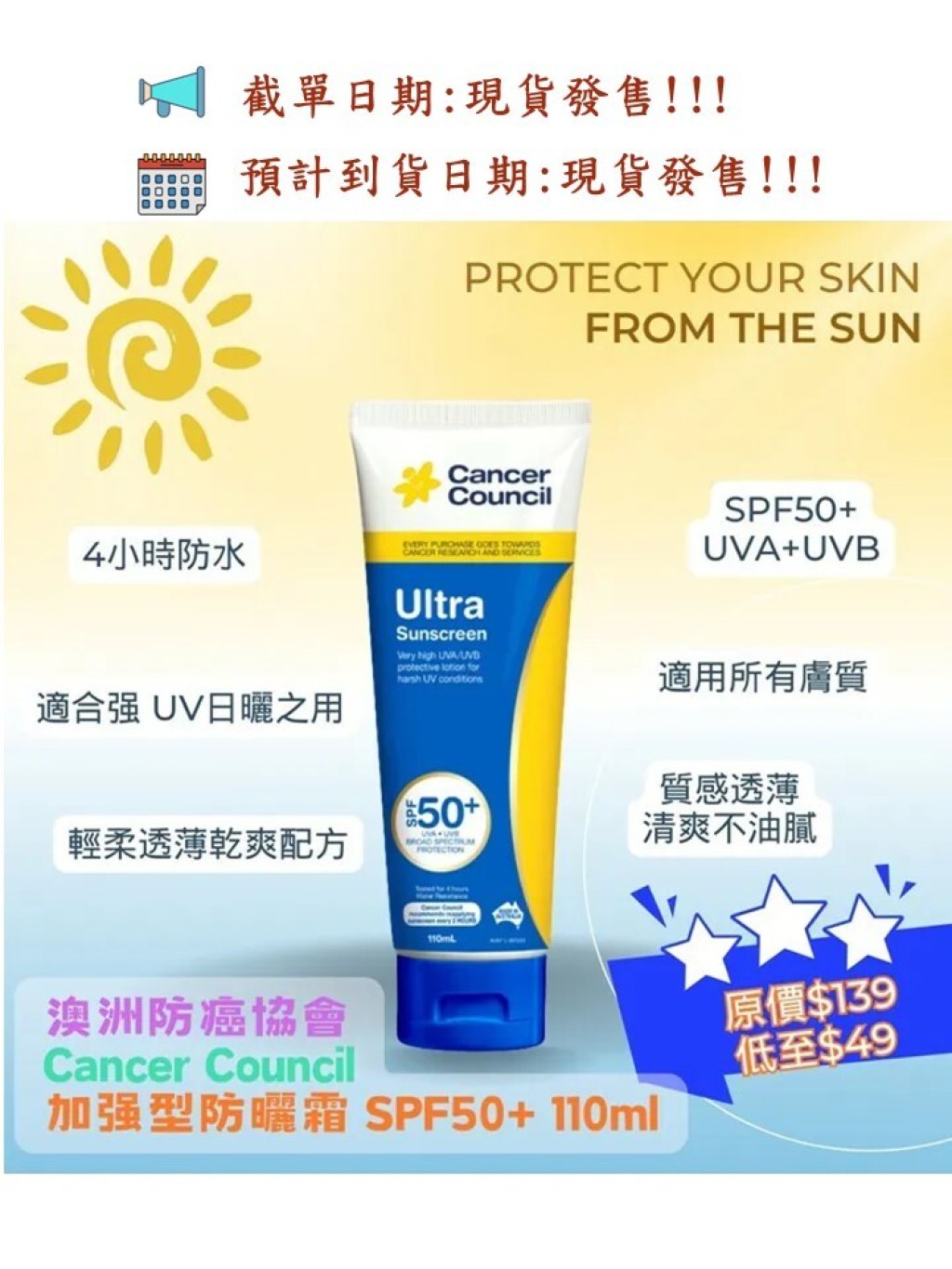 🌈Cancer Council 澳洲防癌協會加強型防曬霜 SPF50+ 🌞110ml