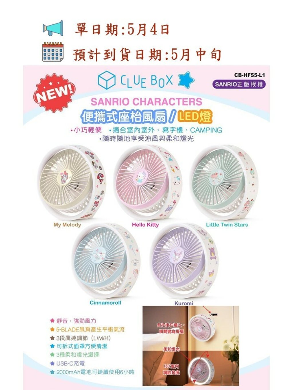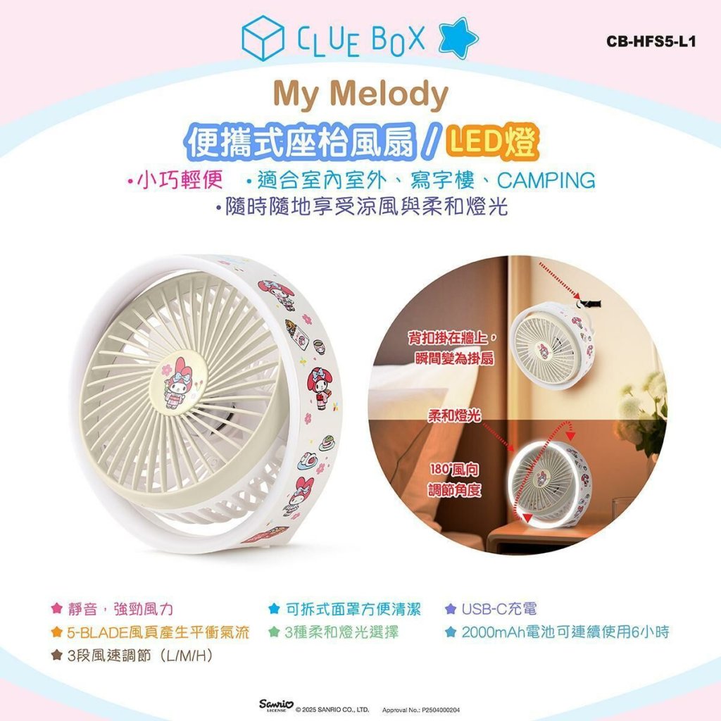這不只是一個風扇,更是一個燈光小幫手!另外增加氣氛照明,為您的生活增添便利與溫馨。趕快入手這款Clue Box實用又可愛的桌上型風扇燈,與Sanrio角色一起感受清涼與溫馨吧! ❄️💡
