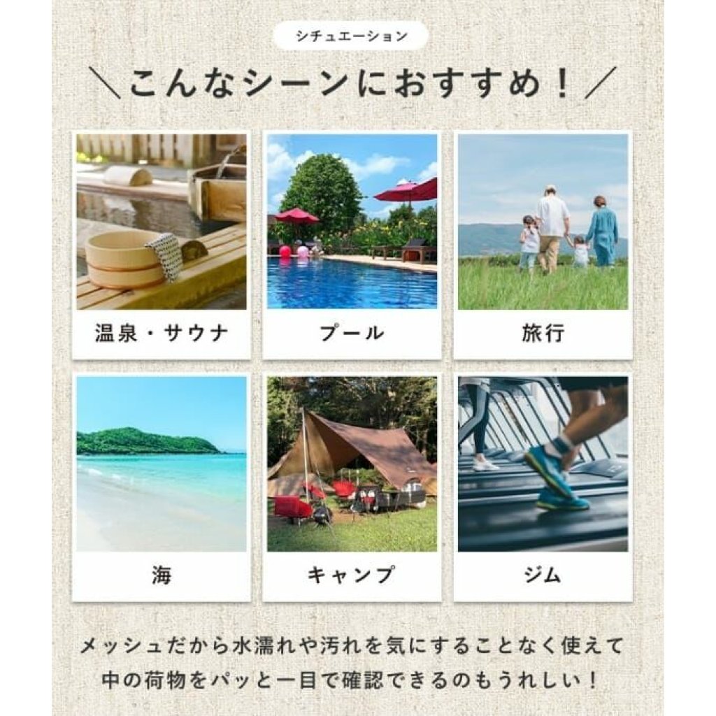 日系潮牌CHOOP採用網紗透視設計,透氣易乾💦大容主袋可收納毛巾、泳衣🩱太陽油、化妝包等日常用品,內側口袋可放手機,外側口袋可放紙巾、太陽眼鏡🕶️隨心收納,輕鬆駕馭各種場合,安心出行👍
