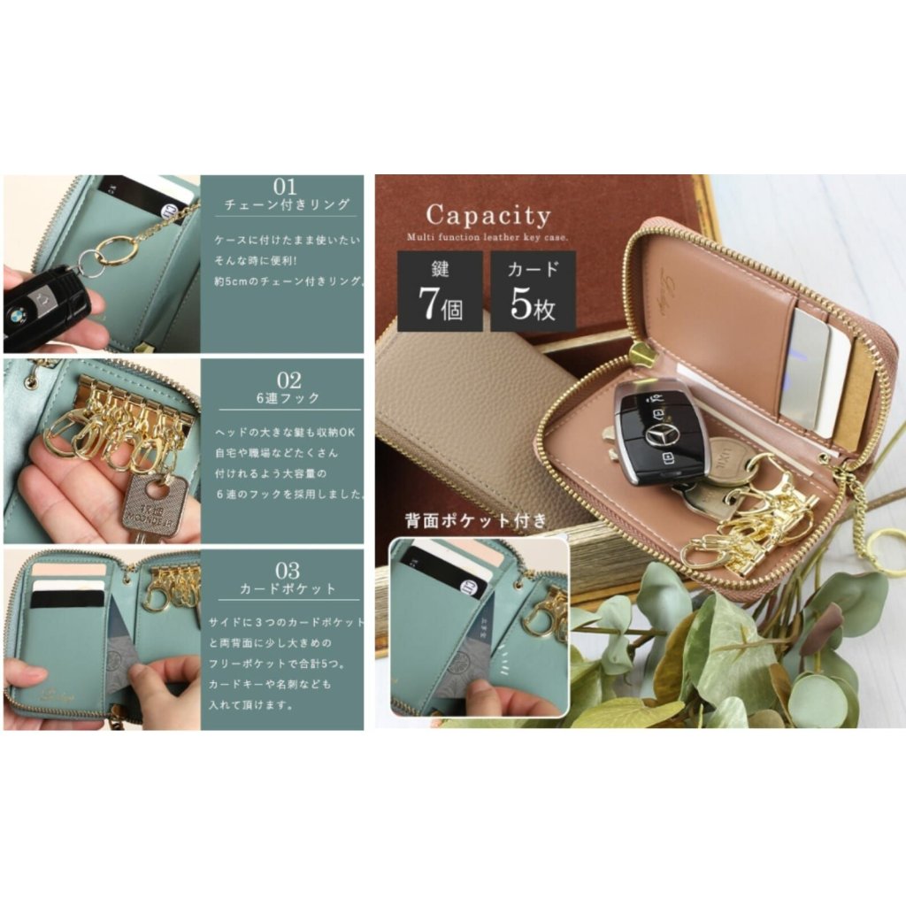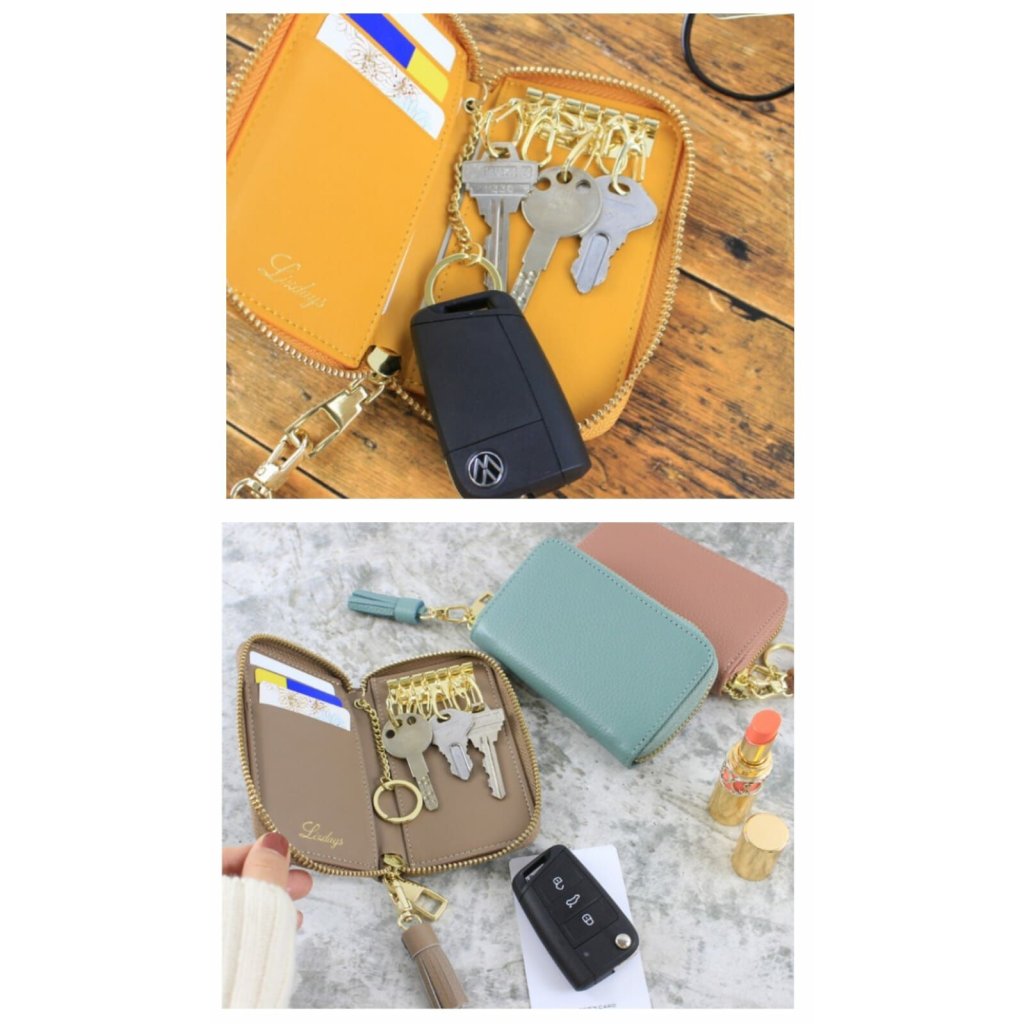 這是一款多功能又實用的鎖匙包,精選優質牛皮,手感柔軟細膩,內部有燙金的品牌壓印Logo彰顯時尚品味😎有1個鎖匙圈可兼容智能鎖匙🔑6個鎖匙鈎、5個卡片袋💳恰到好處的容量,放便㩦帶,出門有它就够了🥳