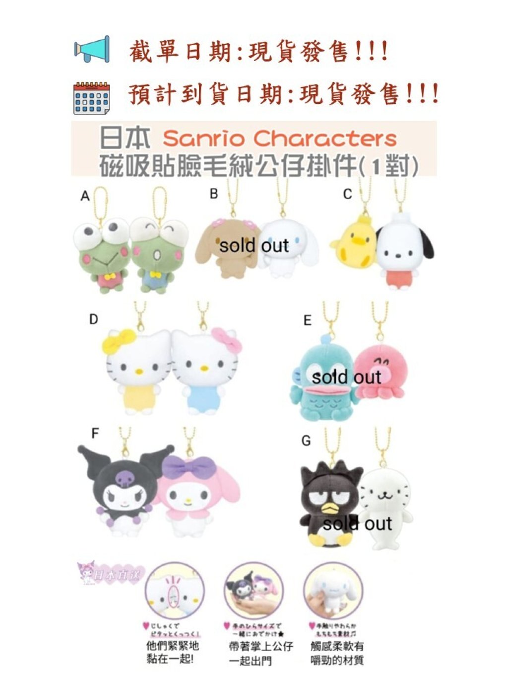 🟡日本 Sanrio Characters 磁吸貼臉毛絨公仔掛件(1對)🟡