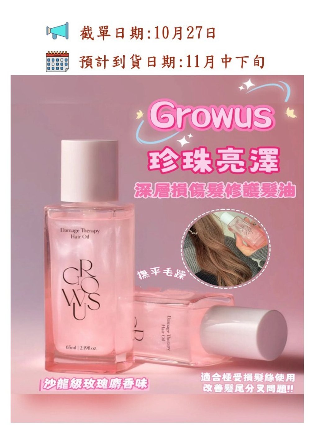 🌸韓國Growus 珍珠亮澤修護髮油 65ml