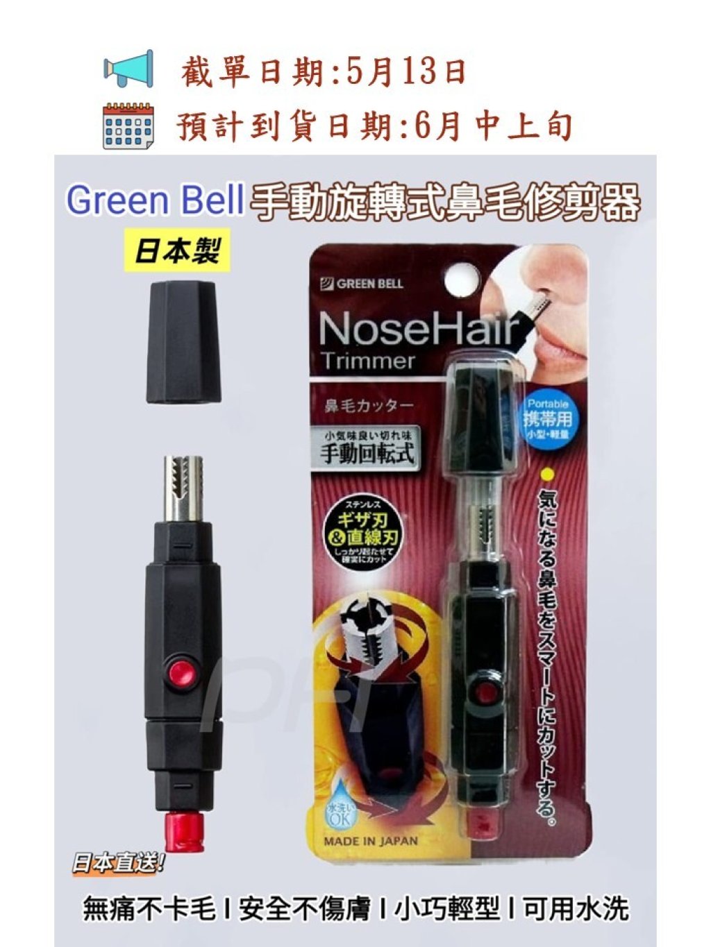 🟡日本製 Green Bell 手動旋轉式鼻毛修剪器🟡