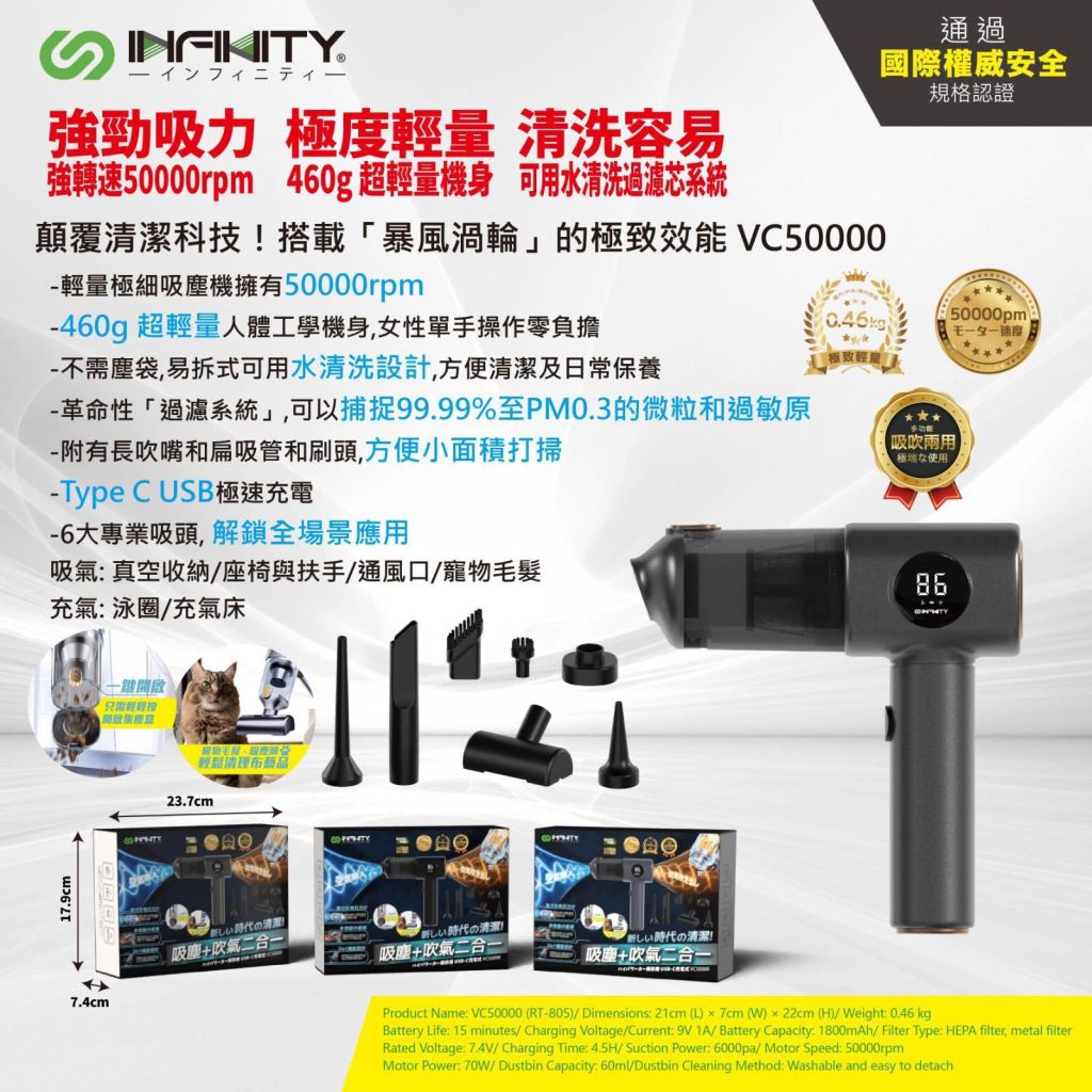Infinity VC50000 颶風級6合1無線吸塵器