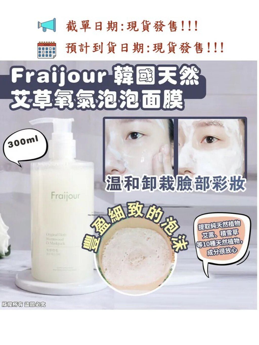🌸韓國Fraijour 韓國 天然艾草氧氣泡泡面膜 300ml