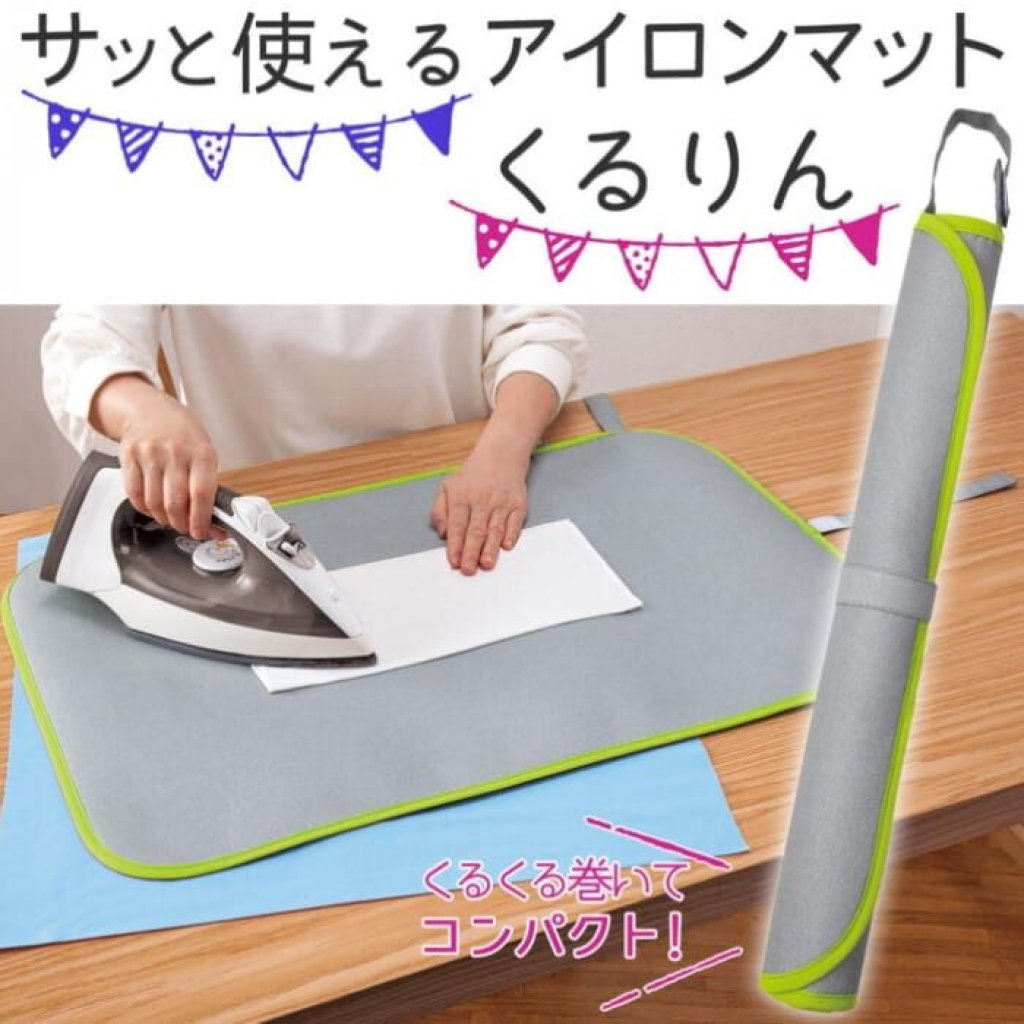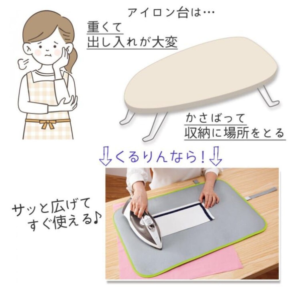 它是可以隨時随地打開可立即使用的熨斗墊👕薄薄的把它卷起來,用魔術帖固定,可掛在衣櫃裡或門後,比傳統的熨衣板方便收藏,不佔空間👍