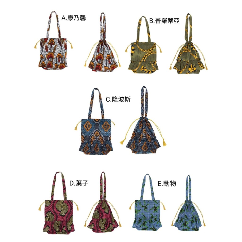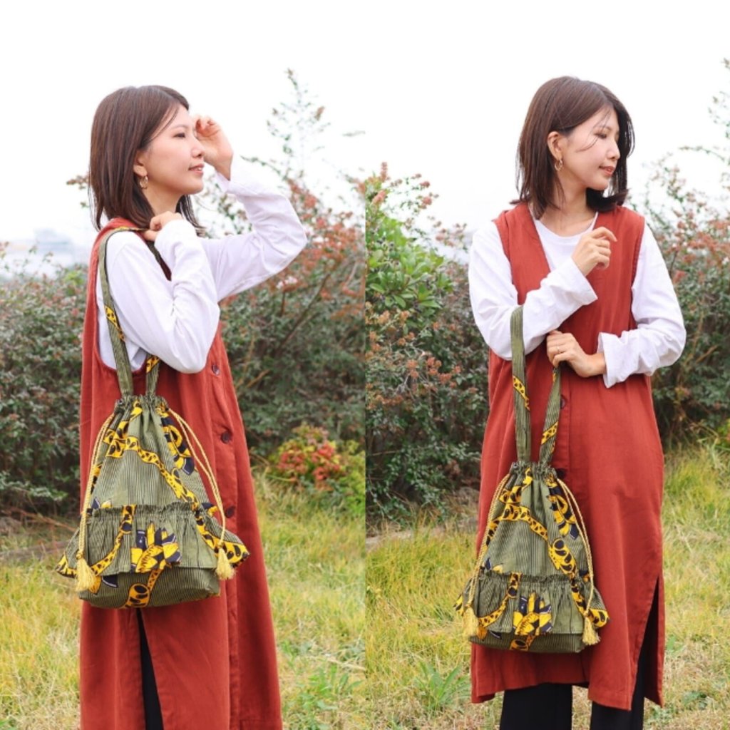 日本 荷葉邊束口非洲印花單肩包