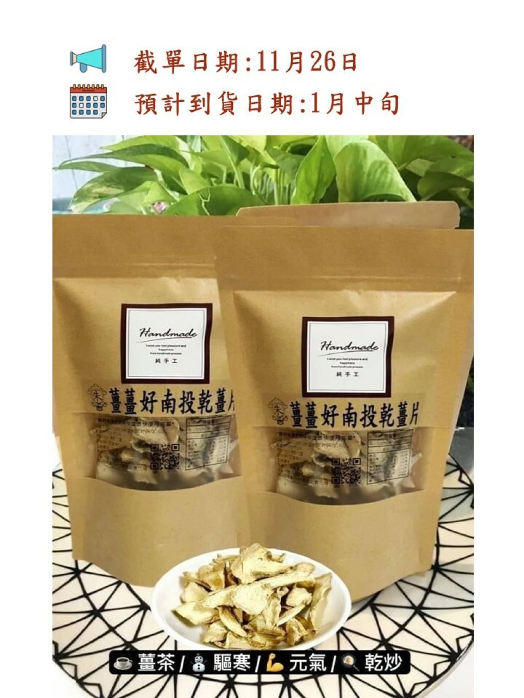 🟡100% 的暖心🧡台灣製造 南投乾薑片50g🟡