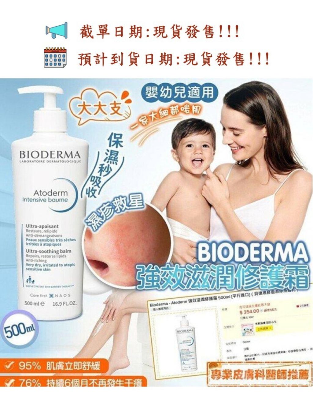 濕疹救星救星 🌟 大人小朋友濕疹恩物✨✨ BIODERMA 強效滋潤修護霜, 大大支 500ml #全新包裝
