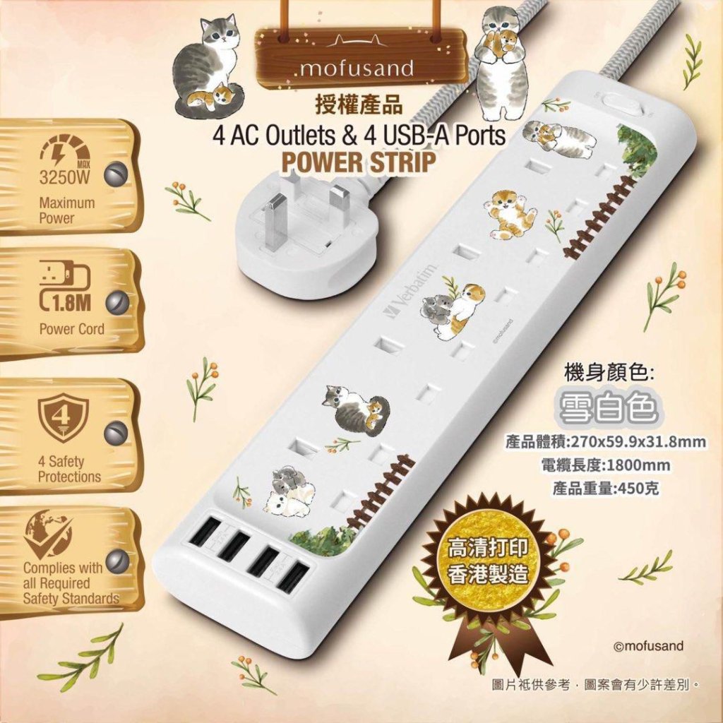🟡Verbatim & MOFUSAND 4 AC Outlets & 4 USB-A Ports 拖板🟡