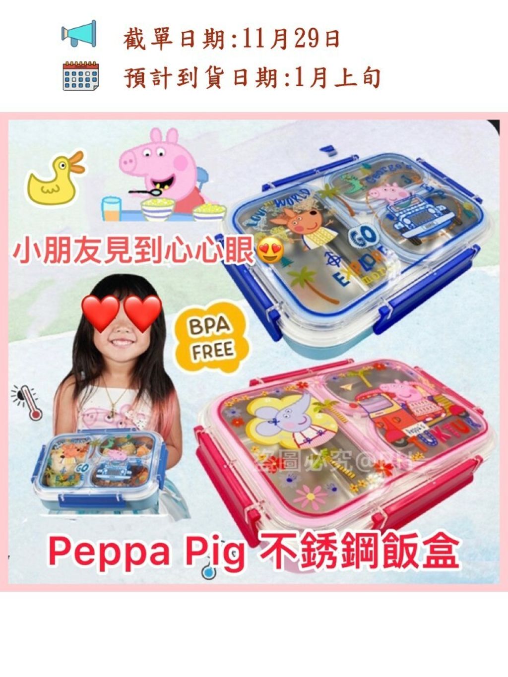 小朋友見到都開心Peppa Pig ,出左不锈鋼飯盒啦👏🏻👏🏻👏🏻