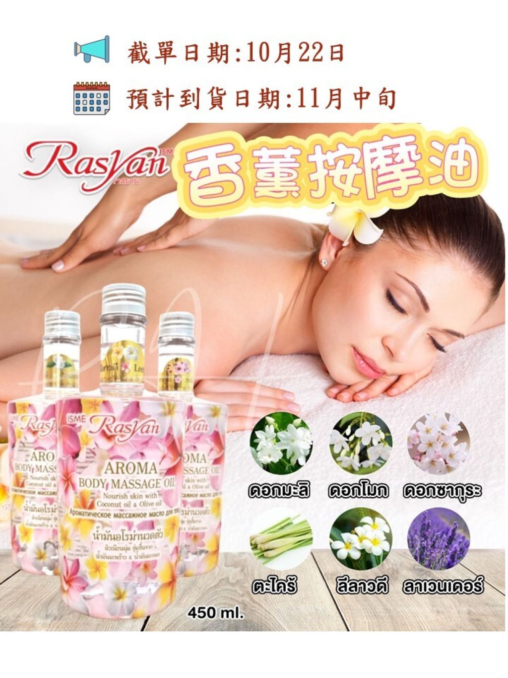 🌸泰國Rasyan Aroma Body Massage Oil 花香按摩油450ml