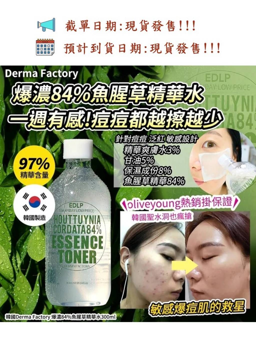 🌸韓國EDLP 爆濃84%魚腥草精華水300ml
