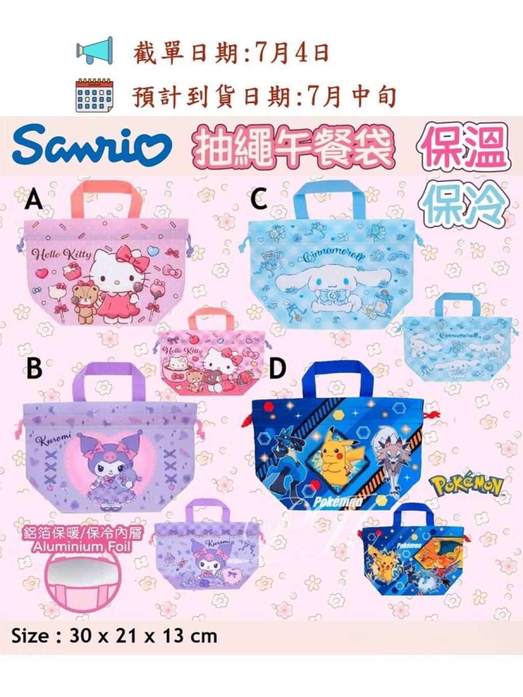 🟡Sanrio / Pokémon 抽繩午餐袋索繩 (保溫/冷袋)🟡