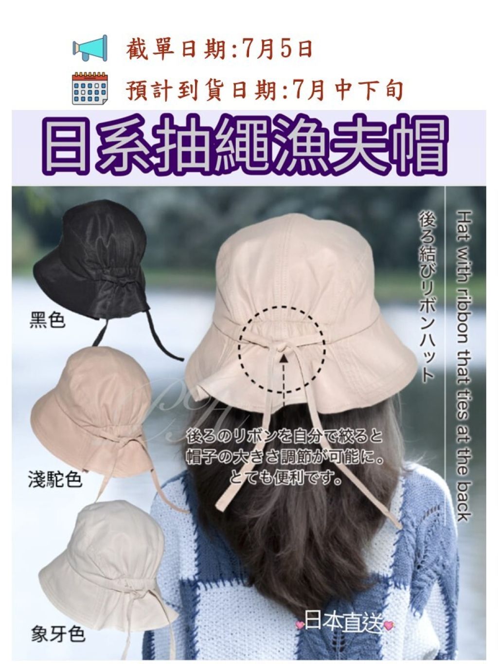 ✅背面緞帶可隨意調整大小,非常方便。