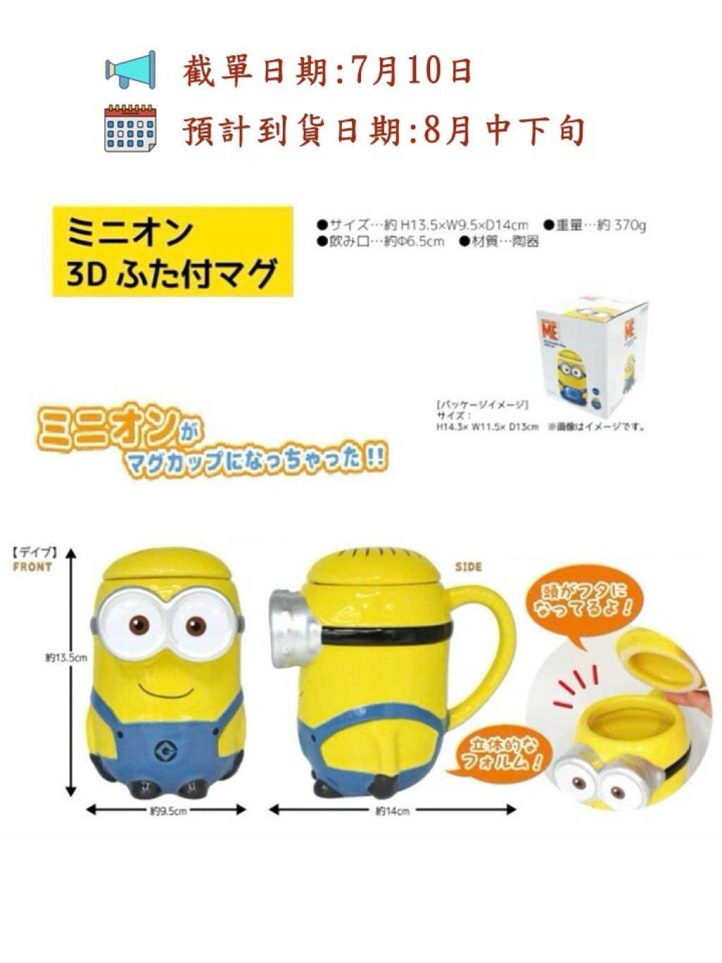 🟡Minion 3D黃色迷你兵立體陶瓷杯 (400ml)🟡
