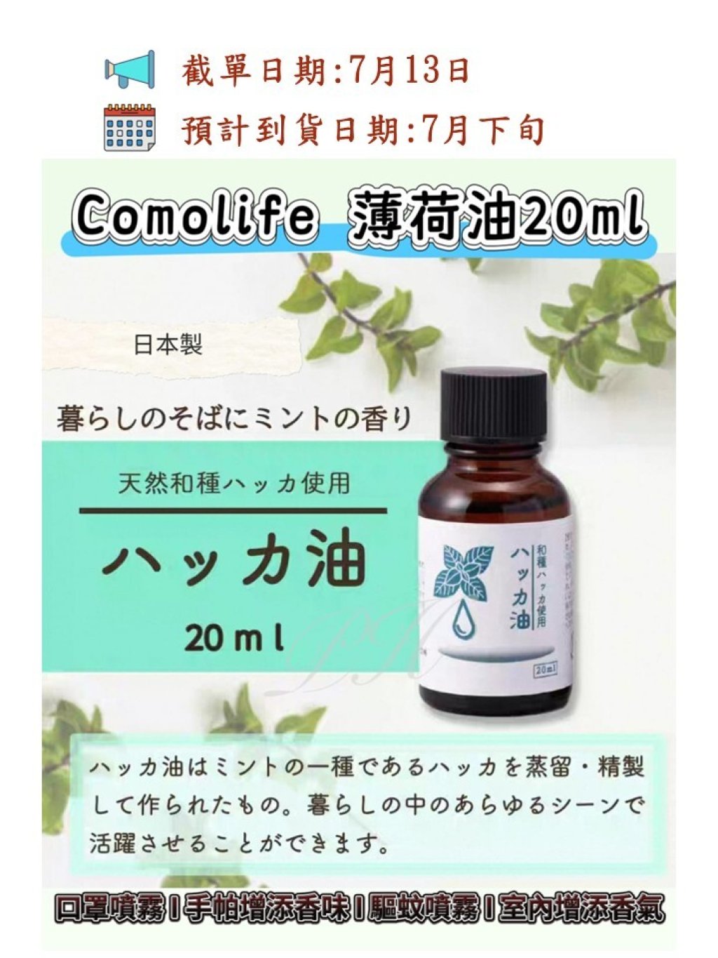 🟡日本製 Comolife 薄荷油20ml🟡