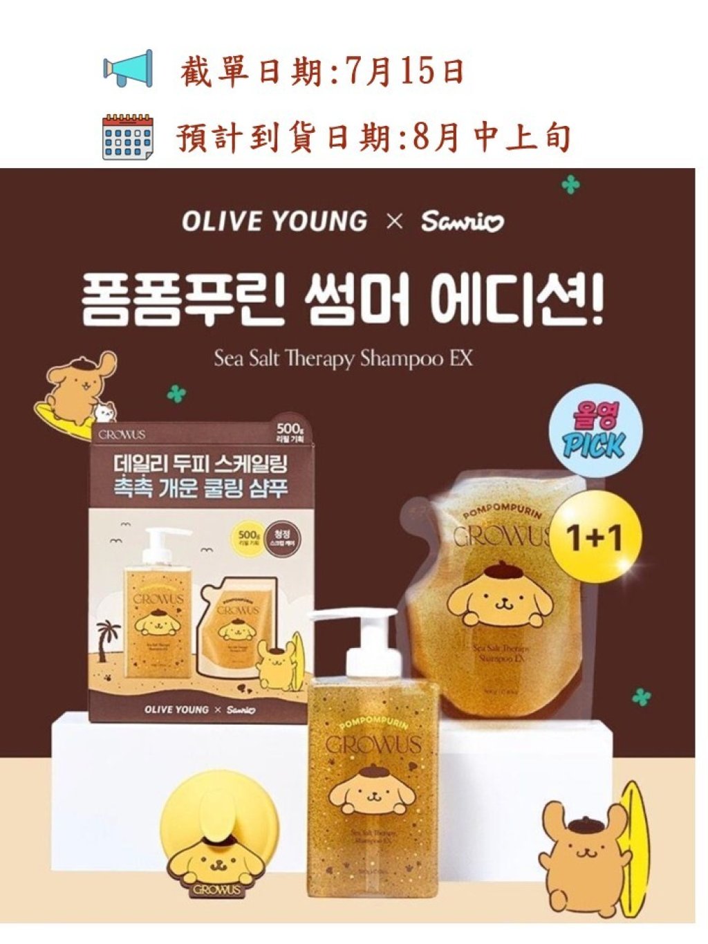 🌸韓國 GROWUS X Sanrio 布甸狗 以色列海鹽磨砂洗髮系列 500g + 500g (補充裝)