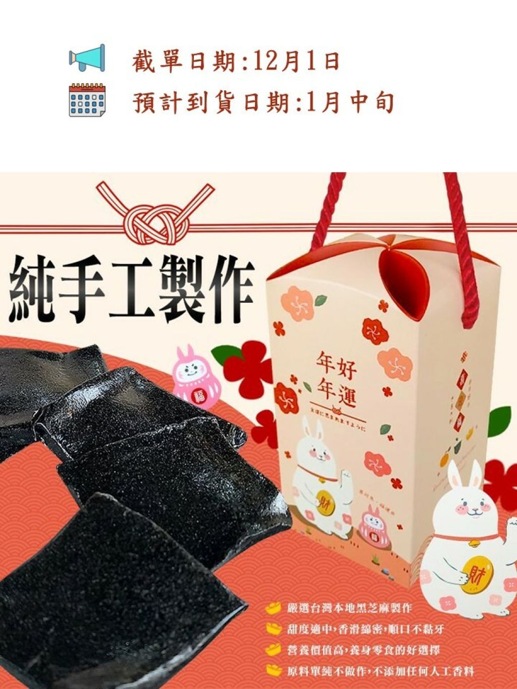 🟡新春小兔盒 超薄手工芝麻糕200g(素)🟡
