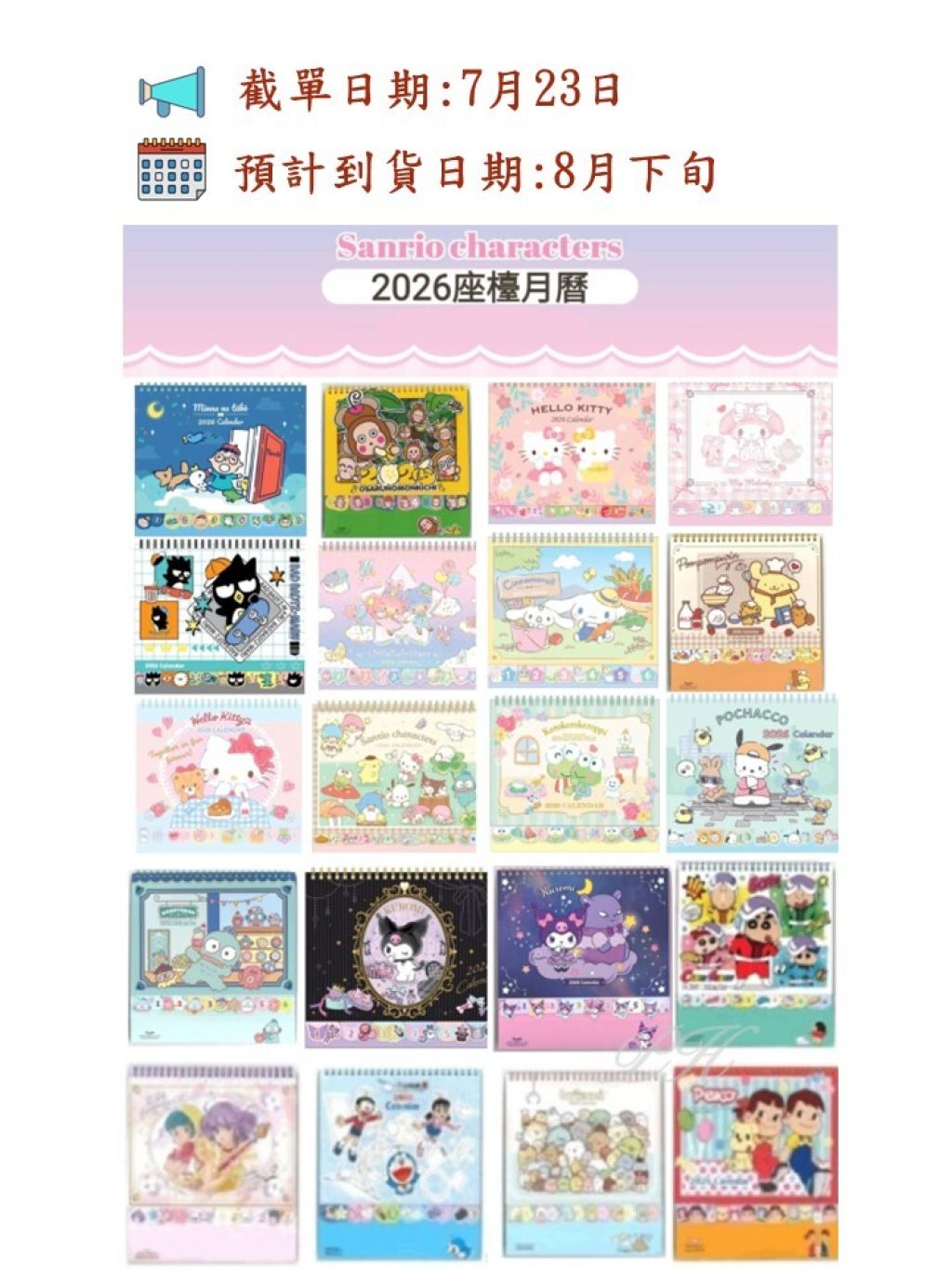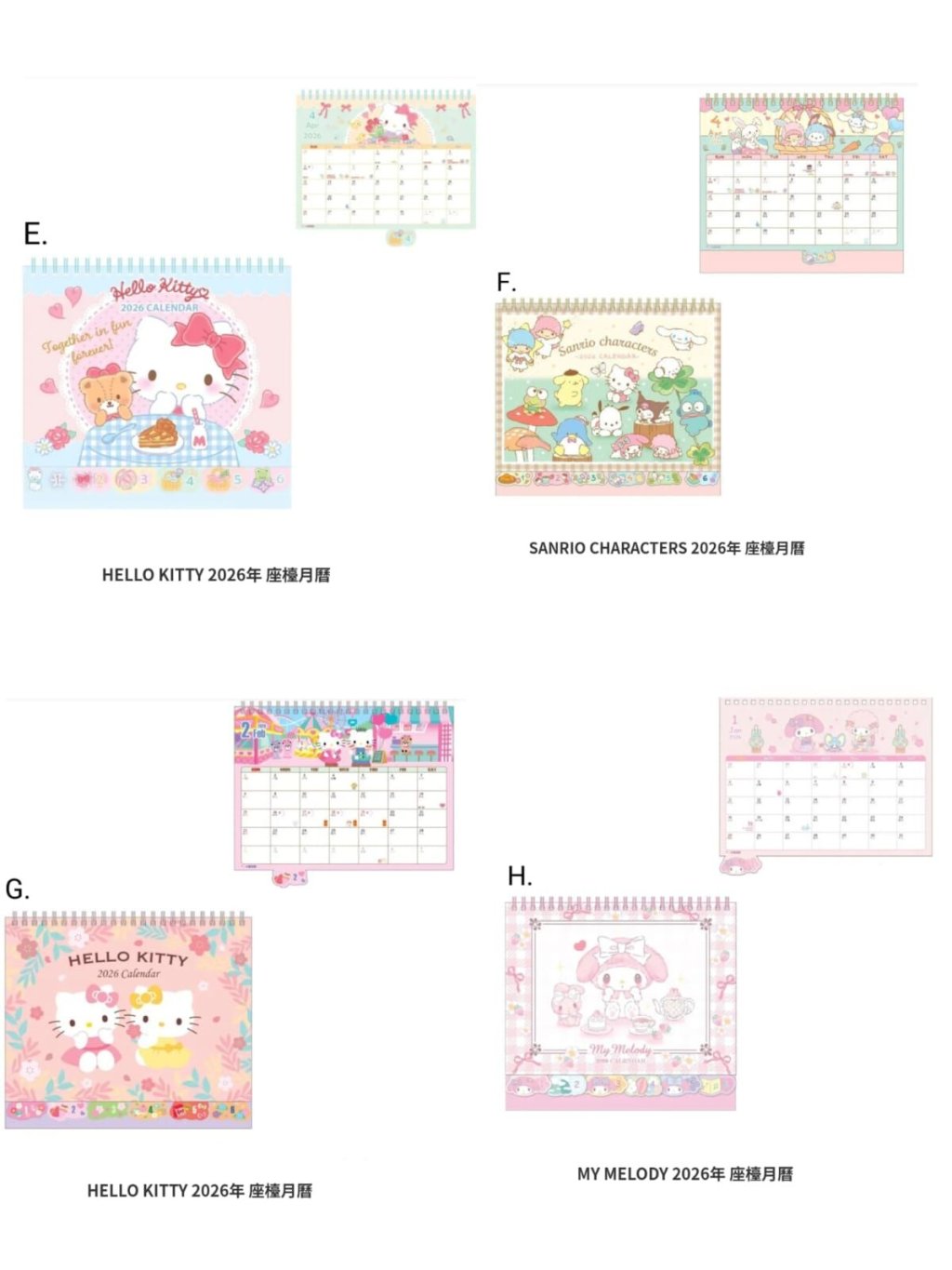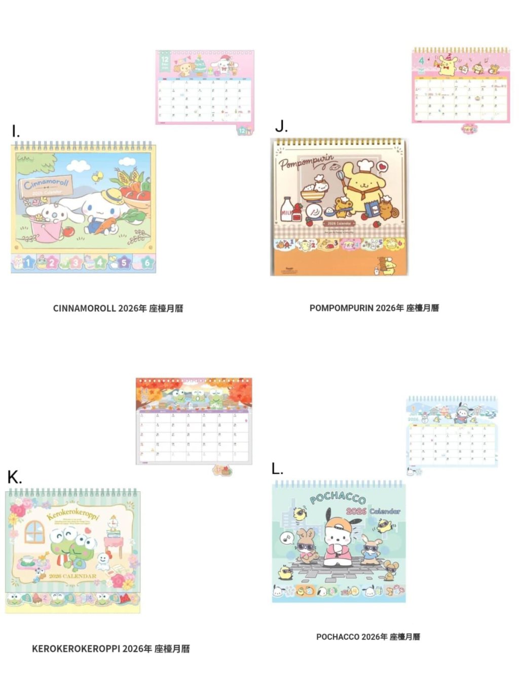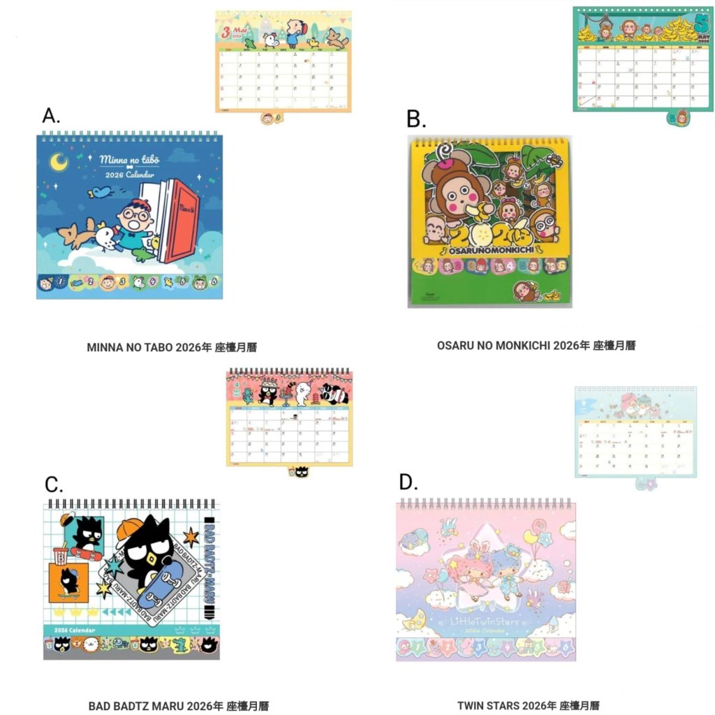 🟡Sanrio 2026年座檯月曆🟡
