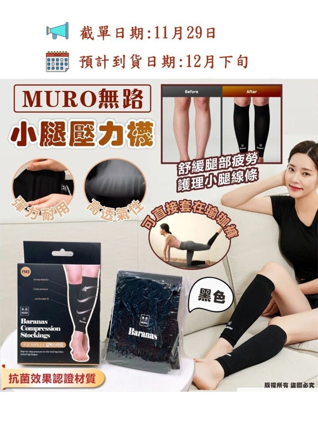 🌸韓國🇰🇷MURO無路 小腿壓力襪 黑色 (2盒/套)