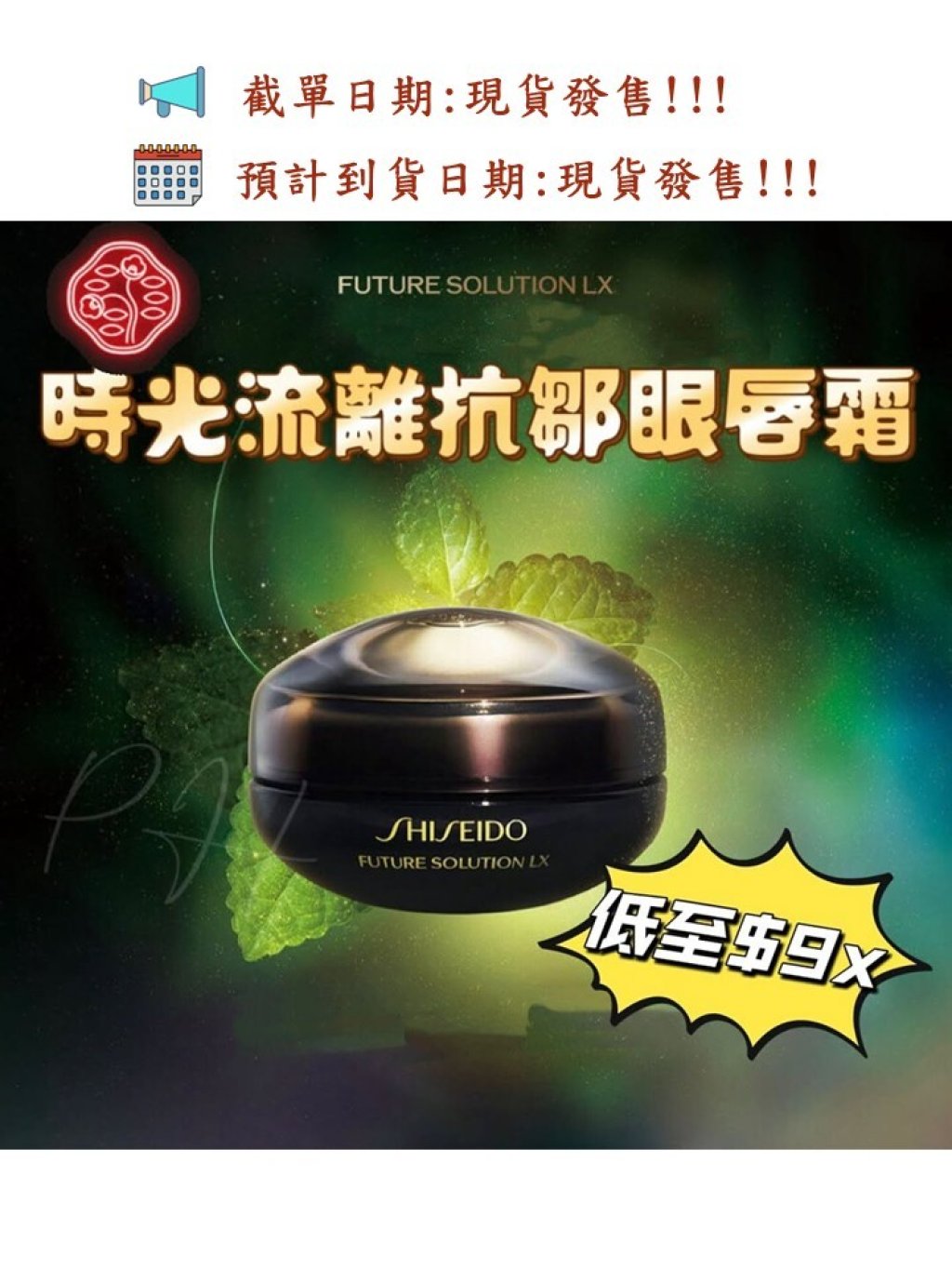 🌸Shiseido 資生堂時光琉璃禦藏臻采抗皺眼唇霜6ml✅官網賣緊$1300(17ML)🤭🤭🤭中样低至$9X/盒 資糅合日本珍稀伊吹山延命草🌿的傳奇再生力,成就🏅專利成分LonGenevity Complex™,賦活天資煥啟力C.C.N.2,開啟美麗基源。奢華的晶鑽煥亮再生眼霜,集中修復及提拉眼周肌膚👀,重建眼周結構,極緻重塑眼形,深度改善鬆弛及下垂,同時淡化眼紋〰️、黑眼圈⚫及暗沉🌚,煥現緊緻明亮的動人明眸✨。🌼白花香氣初調︰佛手柑、榲桲、翠綠清香☘️中調︰濱梨玫瑰🌹、櫻花🌸、梅花基調︰麝香🦌、琥珀香、木香🪵日本珍稀:伊吹山延命草🌿源自被譽為藥草之源的日本🇯🇵神山伊吹山,成就專利成分 LonGenevity Complex™🏅,以超卓傳奇再生力,賦活天資煥啟力C.C.N.2,深入抑制令肌膚彈力流失、鬆弛和皺紋〰️的惡性因子,締造奢華細緻年輕膚質,肌膚每刻展現新生緊緻光澤✨。極緻豐盈質感🧴:配方質感豐盈,改善肌膚緊緻彈力🧽,為脆弱的眼周肌膚縈繞保護膜層,賦予承托效果。👩🏻‍🔬經皮膚科醫生測試✅。💁🏻‍♀️所有皮膚類型🌟效果🌟1️⃣週內,70% 的人覺得眼周肌膚變得緊緻1️⃣ 週後,83% 的人覺得眼周肌膚更加緊緻1️⃣週後,86% 的人感覺皮膚由內而外煥發光彩,富有彈性🧽⭐使用方法⭐取1顆珍珠大小份量於指尖,輕輕塗抹於眼周肌膚👀。☀️🌙早晚作為護膚程序最後一步使用。EXP:2026
