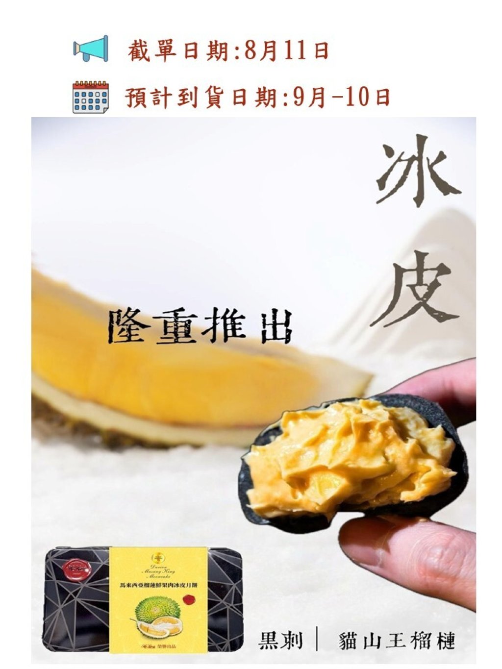🌕【HoKing 全新推出 - 榴槤冰皮月餅】✅全貓山王/Mix雙拼貓山王x黑刺