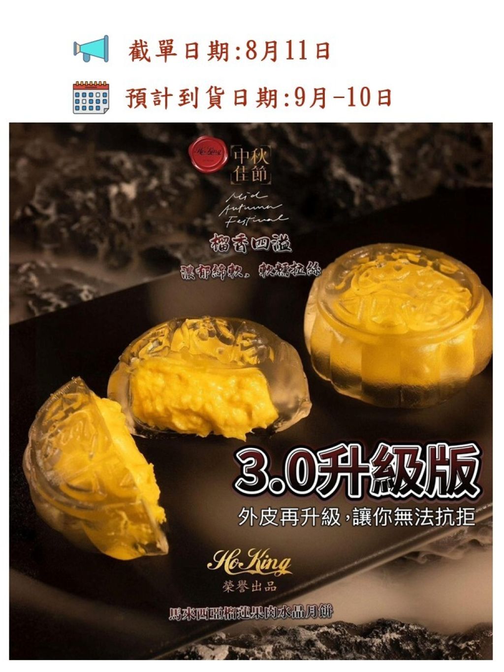🌕 【HoKing 榴槤水晶月餅 — 3.0】升級版重磅回歸🔥 早鳥優惠 ⏰‼️
