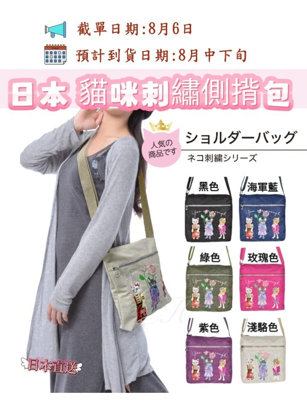 🟡日本 猫咪刺繡側揹包🟡