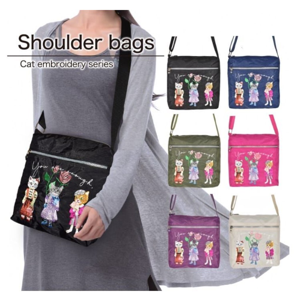 日本 猫咪刺繡側揹包