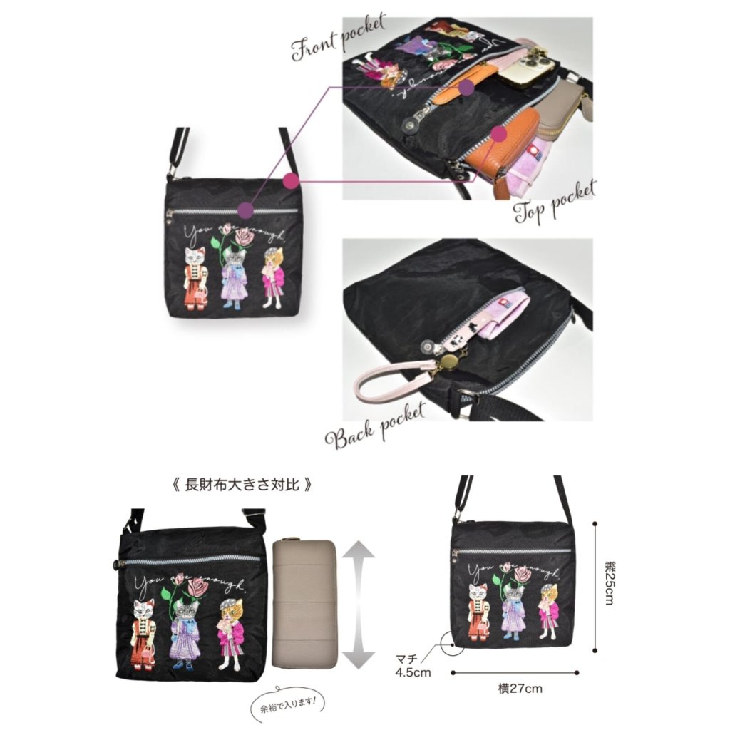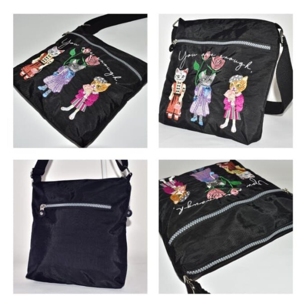 精緻的貓咪刺繡圖案🐱時尚又漂亮,走在路上很吸引眼球👀主袋可放手機📱鑰匙🔑長銀包等隨身物件👝背著出門很輕鬆💃🏼