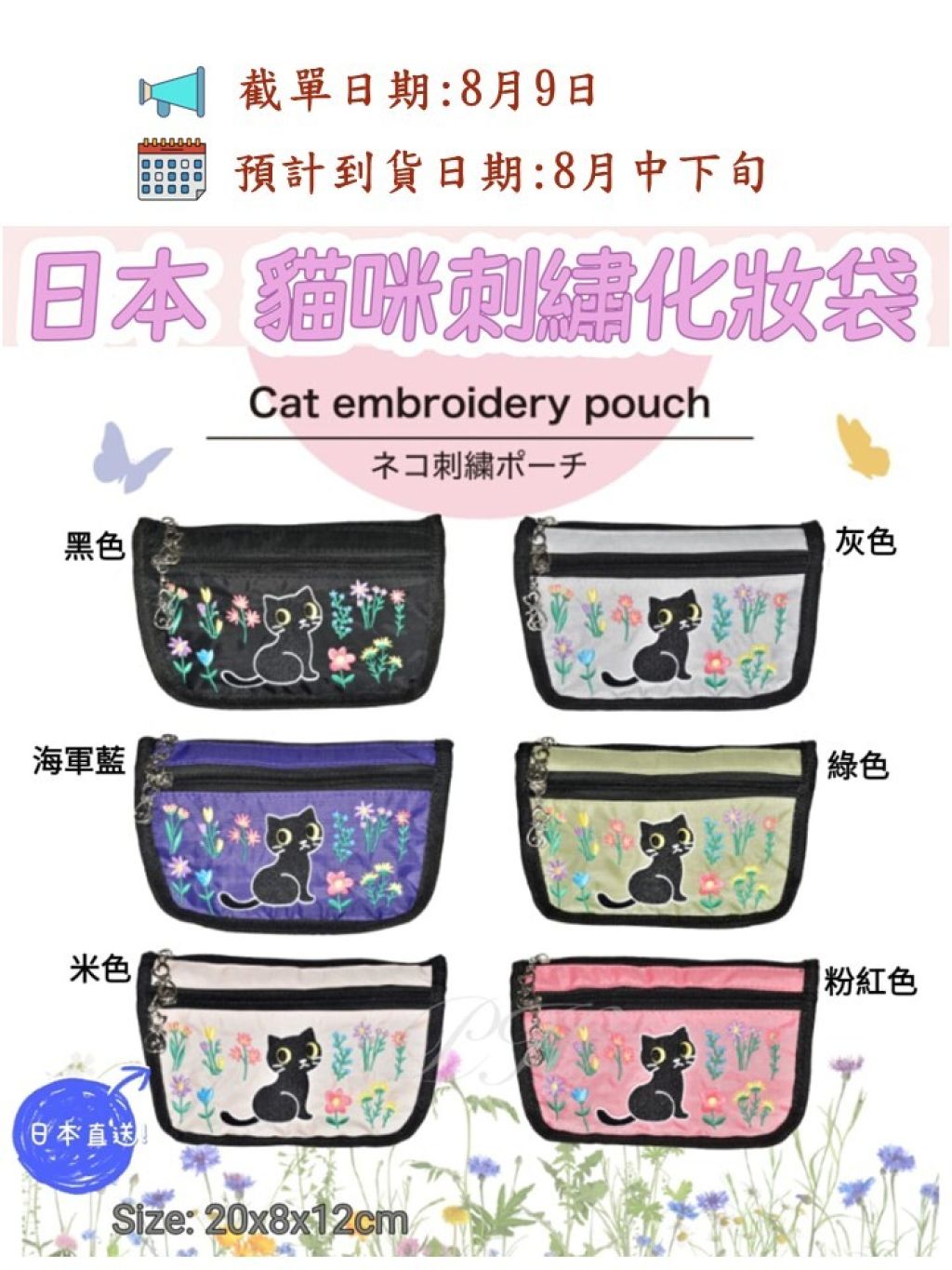 🟡日本 貓咪刺繡化妝袋🟡