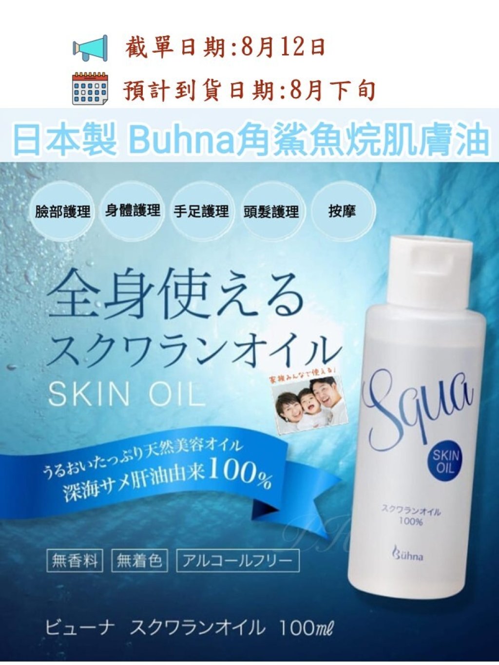 源自💯%的角鯊烷天然美容油,具有很高的滋潤保濕成分💦用於全身皮膚保濕護理,一家大細都可以使用👩🏻👦🏻👶🏻👧🏻