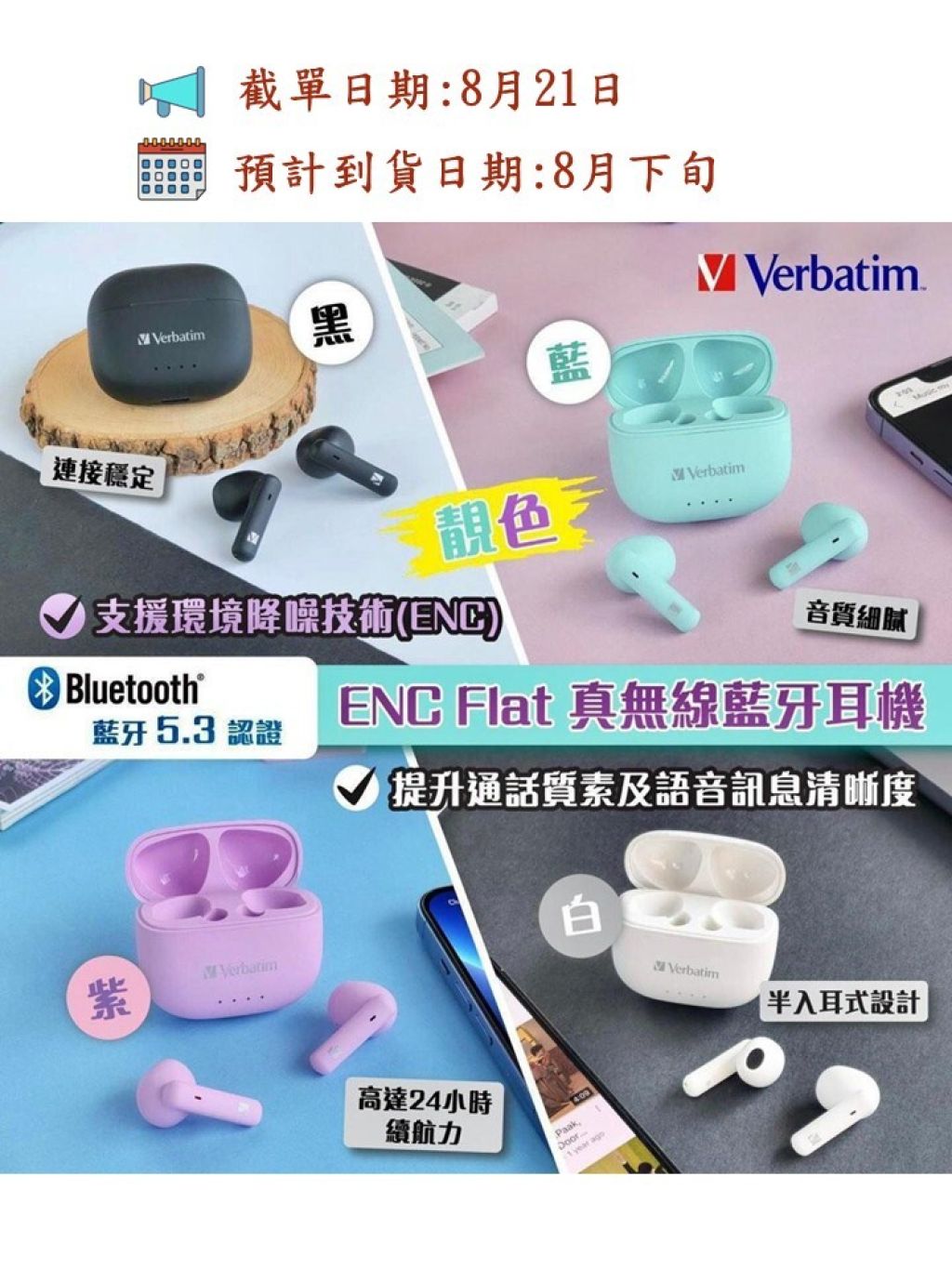 Verbatim 藍牙 5.3 ENC Flat 真無線藍牙耳機🎧