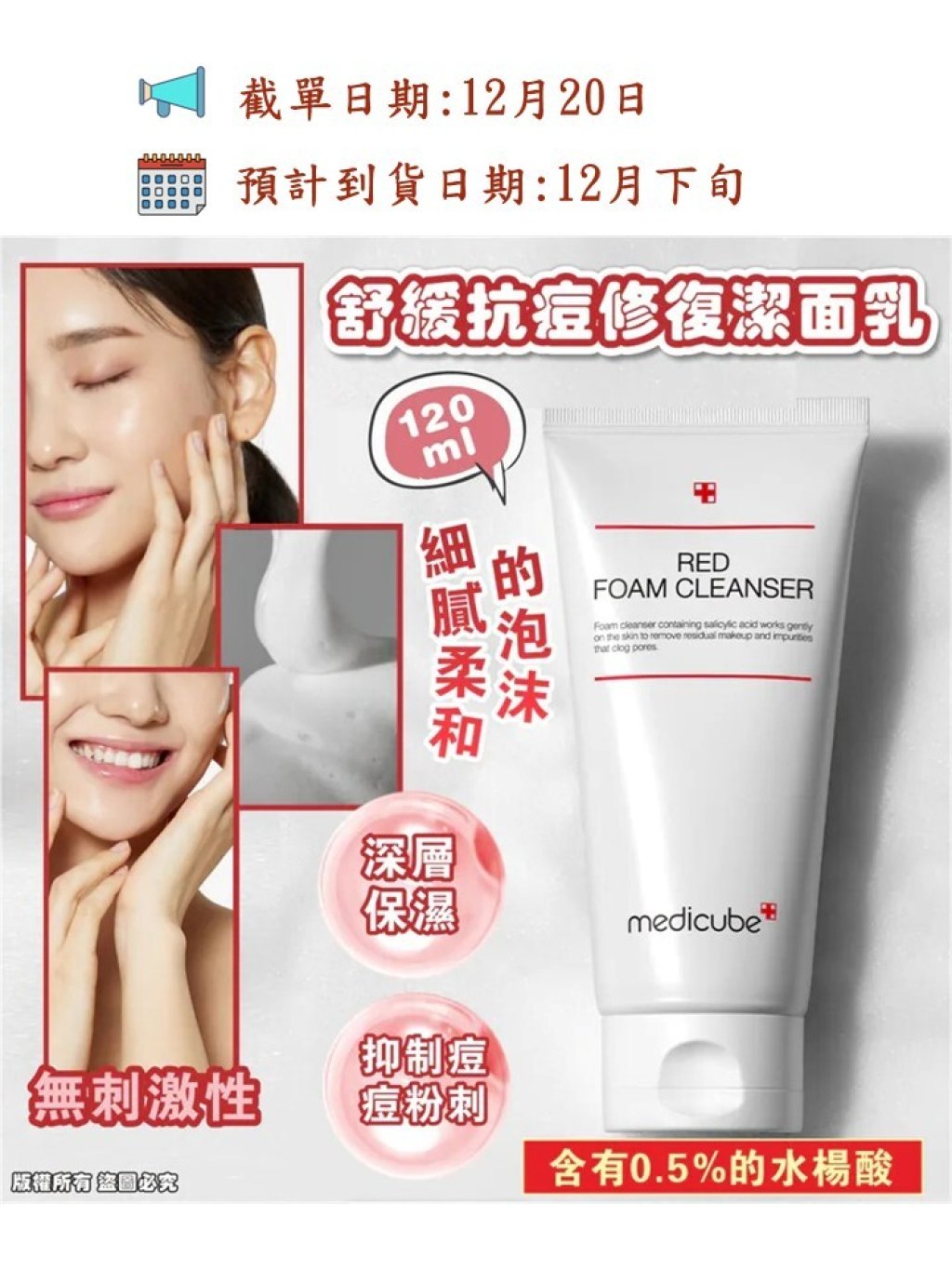 🌸MEDICUBE RED FOAM CLEANSER舒緩抗痘修復潔面乳(120ml)