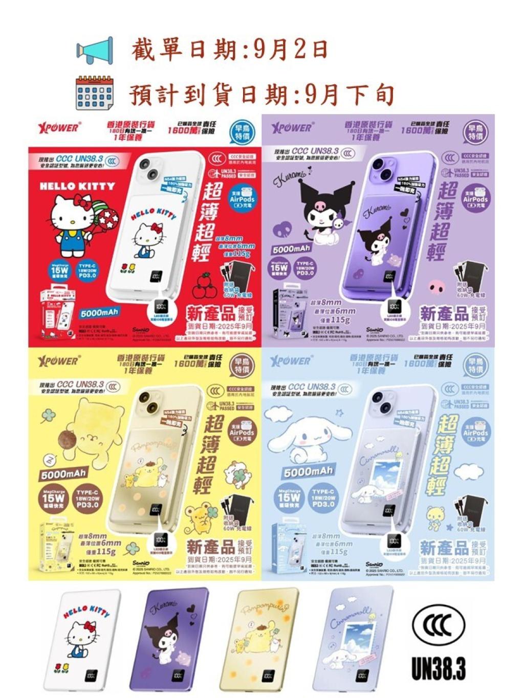 🟡XPower x Sanrio 系列 3合1磁吸+PD3.0 5000mAh鋁合金移動電源 (M5K)🟡