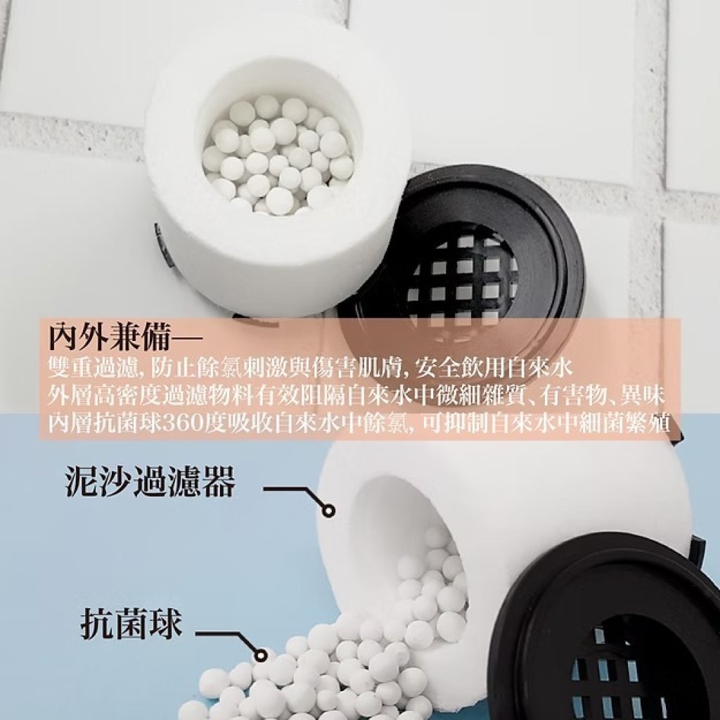 * 內層抗菌球360度吸收自來水中餘氯,可抑制自來水中細菌繁殖