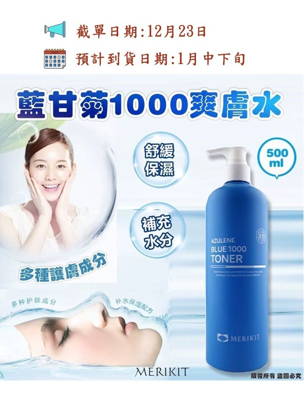🌸韓國 MERIKIT 藍甘菊 1000 爽膚水 500ml