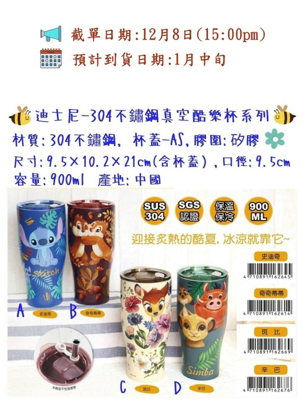 材質:304不鏽鋼,杯蓋/AS,膠圈/矽膠