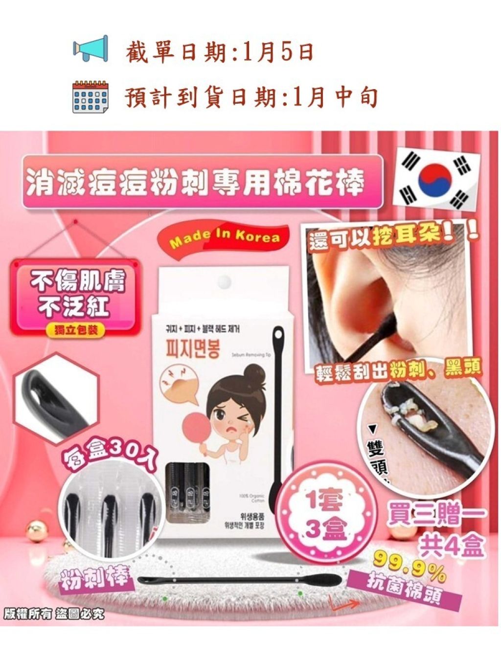 🇰🇷韓國製造滅痘痘粉刺專用棉花棒(3+1得4盒)
