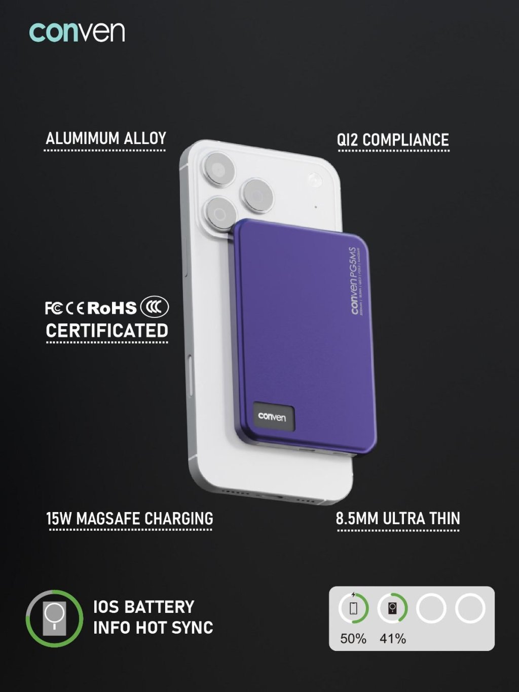 CONVEN 磁吸OLED外置電池 5000/10000 mAh