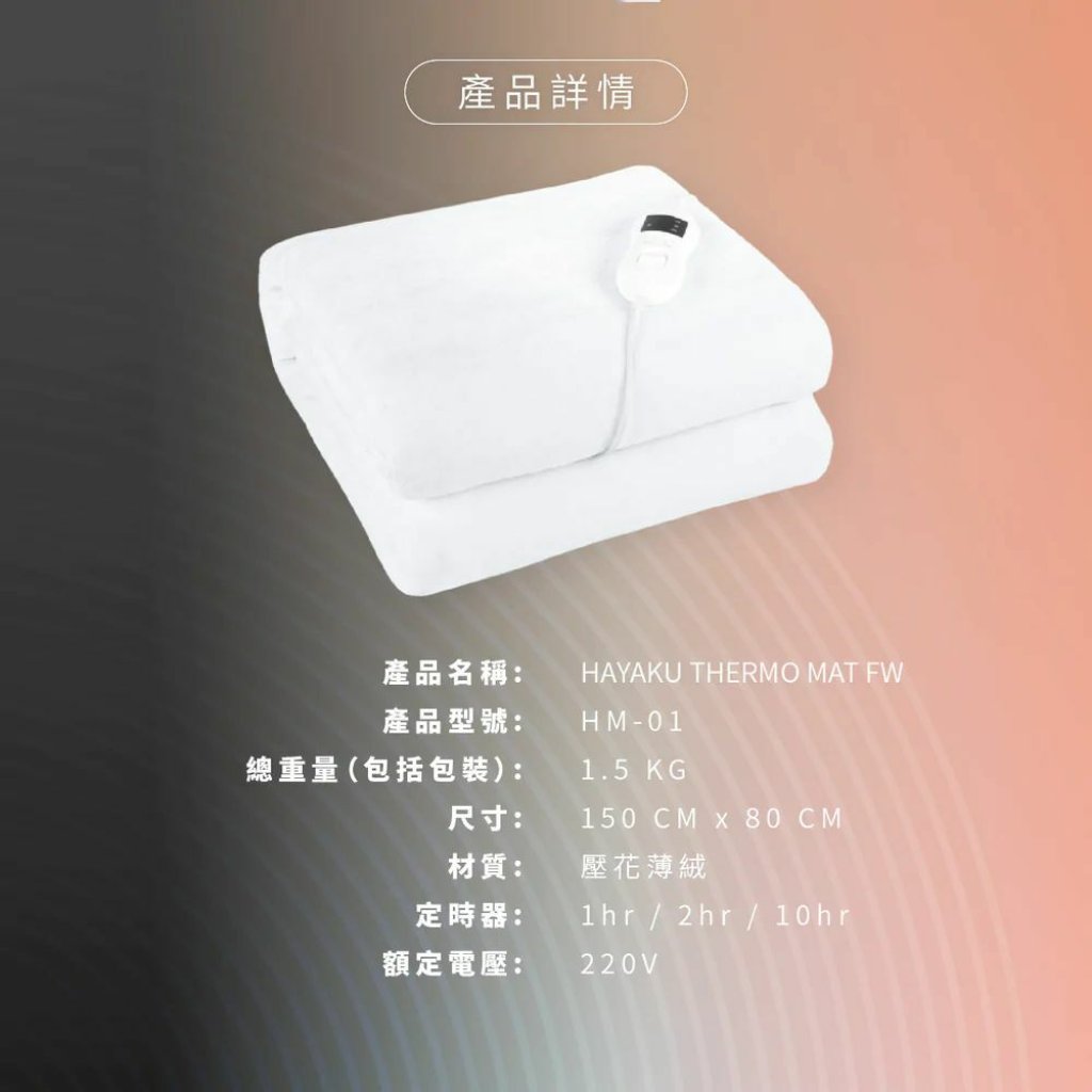 ♨️Hayaku 法蘭絨8度恆溫電暖毯♨️