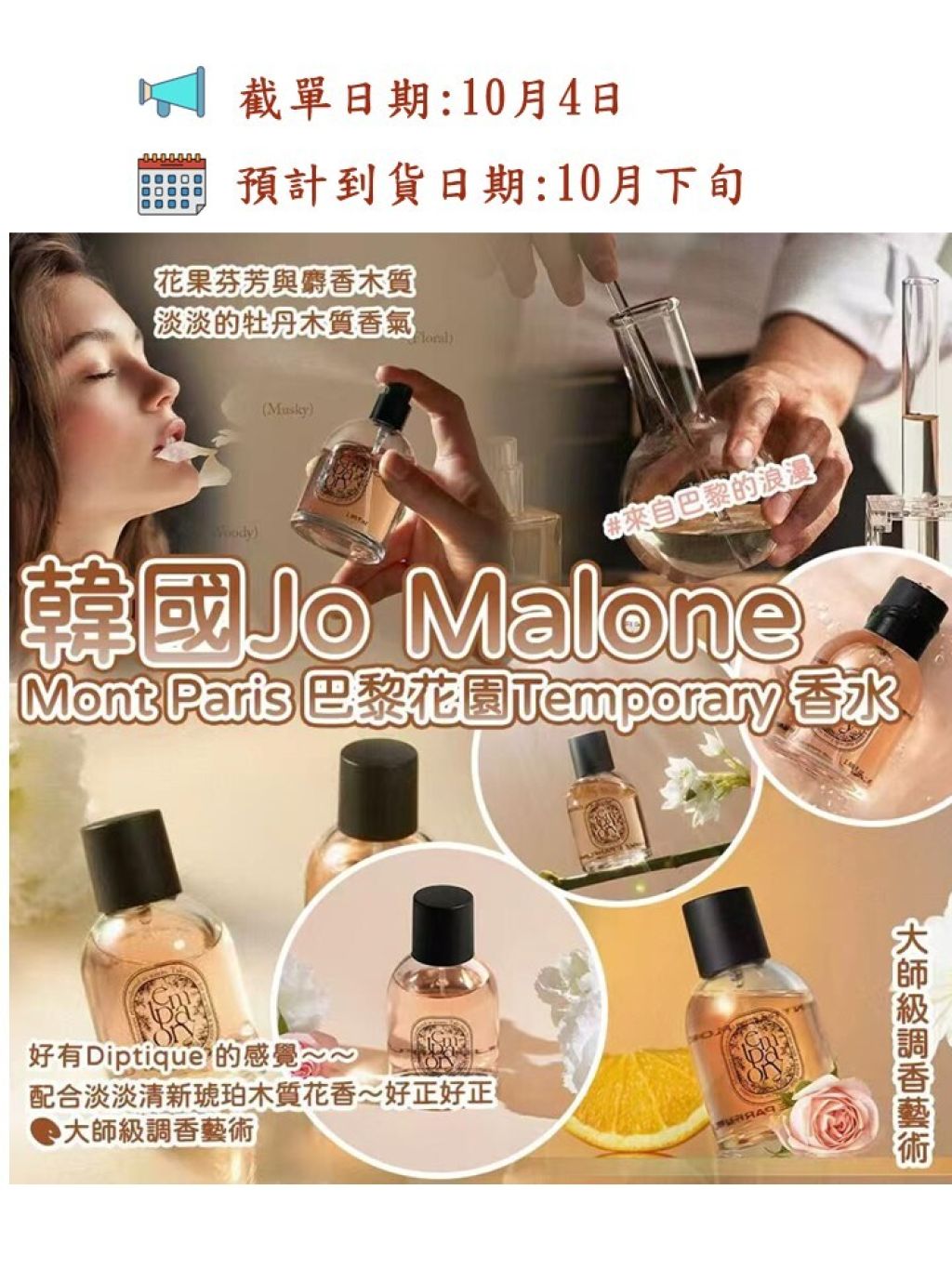 🌸韓國Jo Malone 調香師Mont Paris 巴黎花園Temporary 牡丹琥珀木質香水50ml