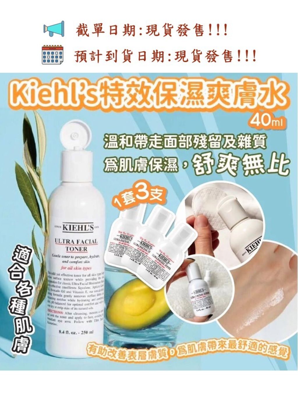 ✨ KIEHLS 科顏氏 高保濕爽膚水 40ML (1套3支共120ml) ✨